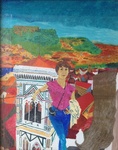 1998Firenzében, 3- om fénykép témáját tereltm egyhelyre. A tornyocska és a vízesés nem egy vonalban vannak. Én pedig teljessen máshol hegyeztem a körmöm. A fényforrás sem az igazi szögböl jön emellet néhol eltér. A fenykép sikertelen a müvön a víz átlátszó. Festmény valahol Szerbiában van.