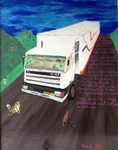 1998Amig a kerekek forognak. Humoros szimbolumokka,l eltünődő élet. Munka, szorgalom, megélhetöség? Amikor egy barátom munkát kapott feldobódott szelemileg s érvényességgel telten néz a társadalomra. Dr Máriás Béla erröl a festményröl is írt kritikát. - "Tarzan Amsterdamban" Szövegek versek java része saját gondolatok, de vannak idézetek is. minden kis állatnak megva a maga a mondokája