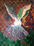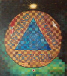 1993Vrede gevolgd A festmény érdekessége, hogy nincs két egyforma négyzetecske. Minden négyzetecskét külön külön kevertem ki a szinét. A festmé alapszimbolumai Tao izmussal kezdődik majd katalikus s a mai vílág tárgyai. Az '90- es évek elején találkoztam egy békeszervezettel melynek tevékenysége a Jugoszláv polgárháborút ellenezte. Így örökítettem meg a nagy köszikla mely ellenál a sorsnak nemzeti identitás. Benne a kis négyzetecskék a lelkes sokasága, melyek nagysága egyforma de szinük, befogadásu, csillogásuk más és más. Tevékenységünk és küldetésünk kulömbözik. A a festmény érdekessége: fokuszálas néhány másodperc után a háromszög vibrációba kezd vagy 3D -be ugrik. Gyakorlott 3D nézőket újra és újra visszacsalogatja.